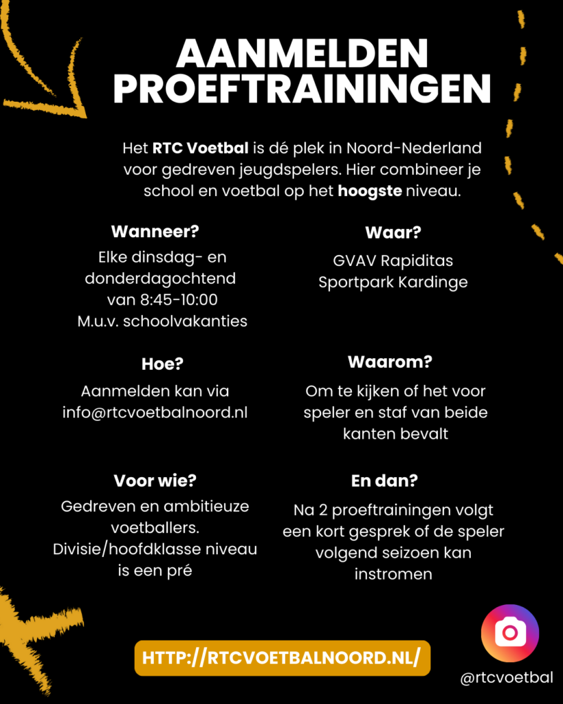 Een leerling kan naar TTS wanneer hij/zij is toegelaten tot het RTC Voetbal Noord. Voor de selectiecriteria klik hier.